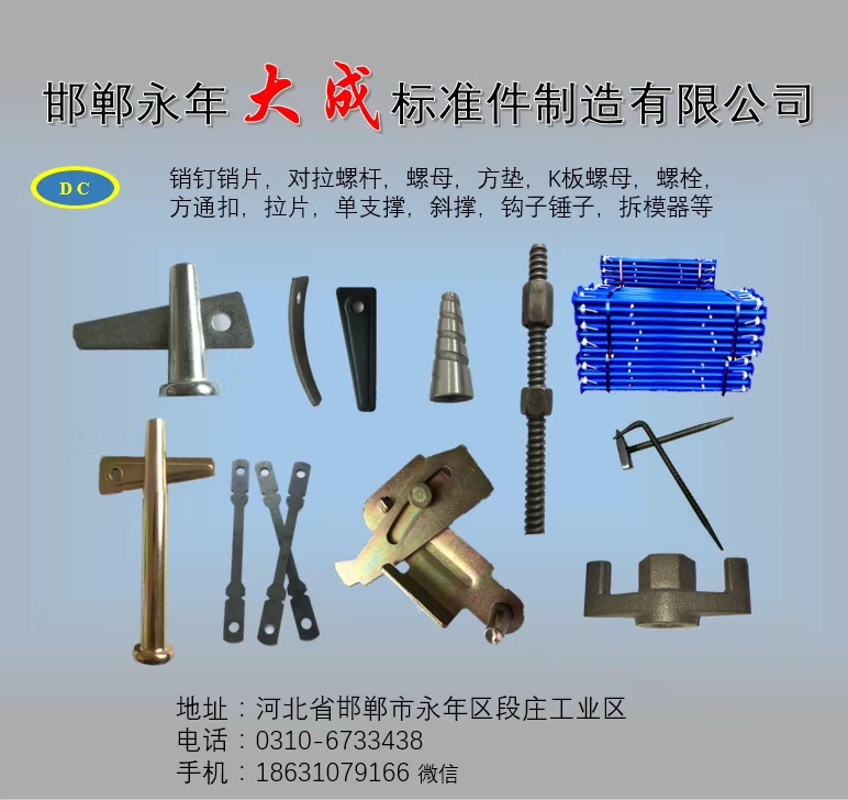 點(diǎn)擊數(shù):48142019-07-08 15:54:18 來(lái)源: 鋁模板銷(xiāo)釘_鋁模板配件_建筑扣件螺栓_扣件螺絲生產(chǎn)廠(chǎng)家-永年區(qū)大成標(biāo)準(zhǔn)件制造有限公司